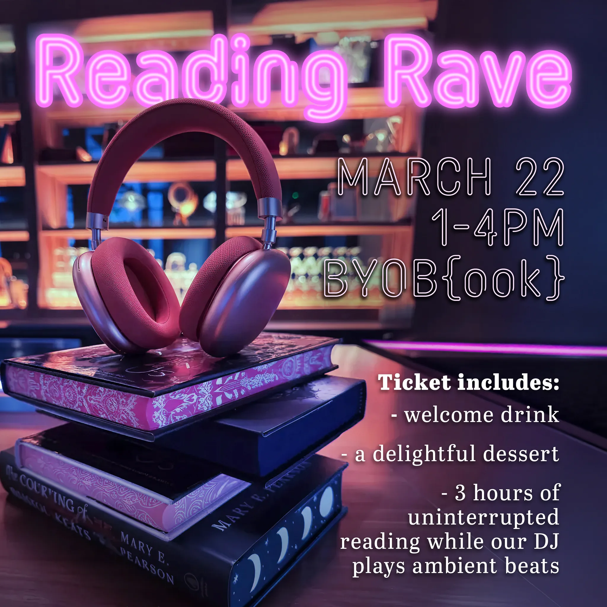Come Read With Us! Enjoy 3hrs of uninterrupted reading time with Bookish Balls, complete with a live DJ to play “bookish beats” in the background while you sip on themed drinks by Waterworks Bar and enjoy a delightful desserts.