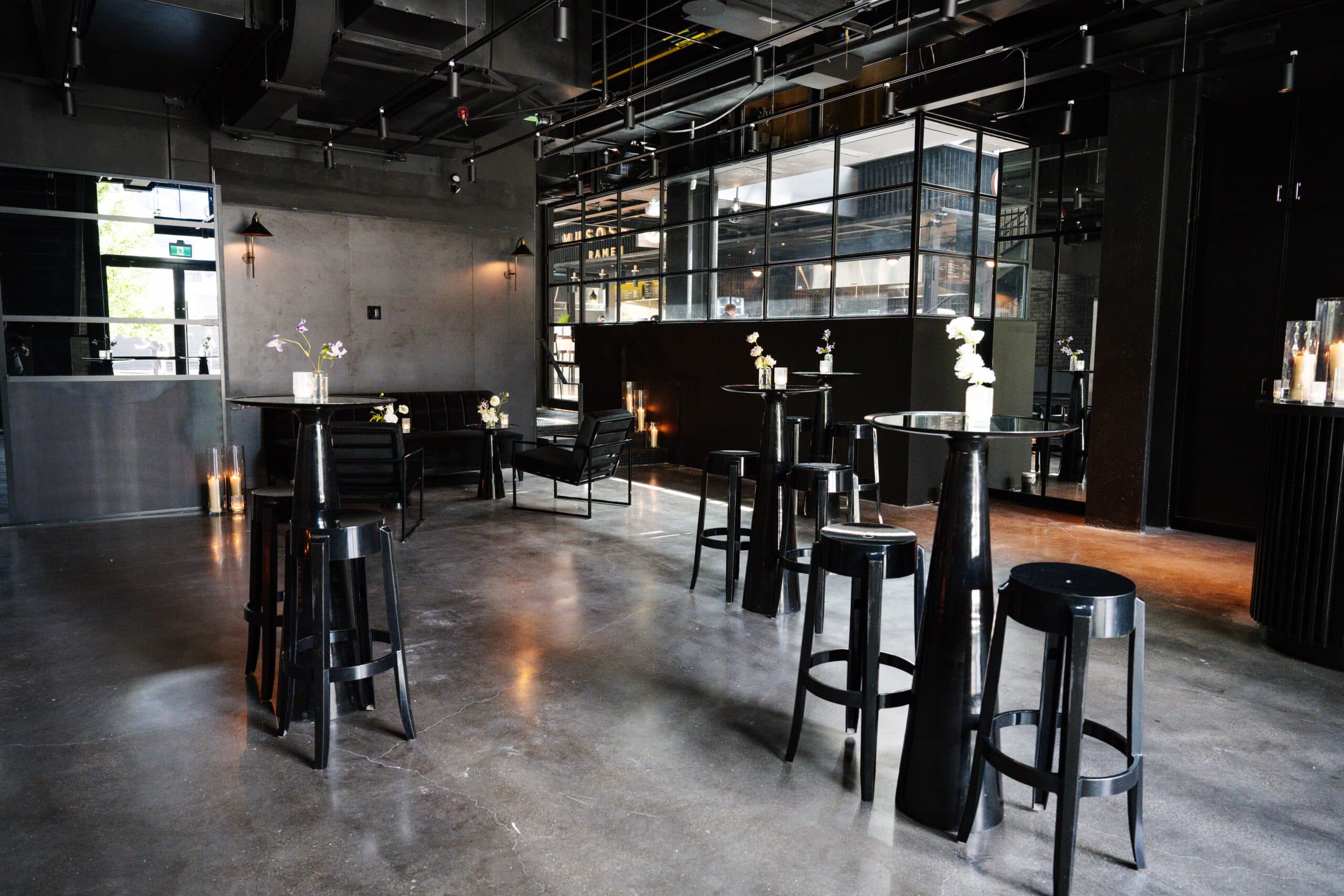 The West Hall is a sophisticated event venue spanning two floors. Welcome your guests in our Reception area off Maud Street, then ascend to the main event space. Sleek polished concrete floors, steel beams and mirrored walls create a contemporary atmosphere within a heritage building. The hall features a private restroom and convenient access to both a guest elevator from the main level and a service elevator from the loading dock. Versatile and adaptable, the West Hall can accommodate a variety of events, from intimate gatherings and formal dinners to product launches and corporate meetings.